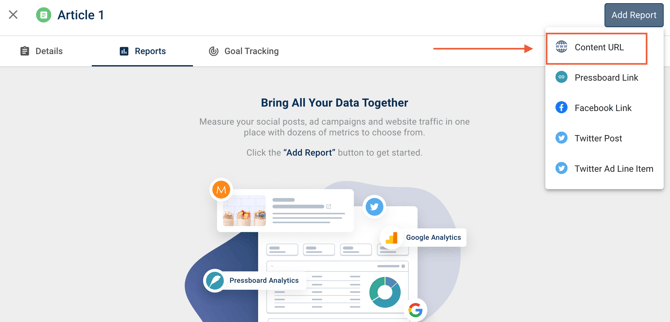 - Click on 'Add Report' and select 'Content URL'.